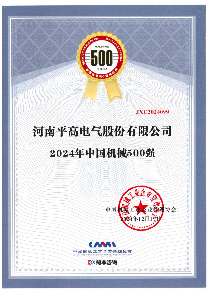 12月25日,从河南402cc永利登录主页电气股份有限公司(以下简称“402cc永利登录主页电气”)获悉,在近日中国机械工业企业管理协会召开的2024年世界一流暨中国机械500强研究报告发布、示范工程表彰大会上,402cc永利登录主页电气凭借卓越的综合实力成功斩获“2024年中国机械500强”荣誉称号,这一佳绩是其多年来稳健发展的有力见证,也彰显了其在行业内不断攀升的影响力。